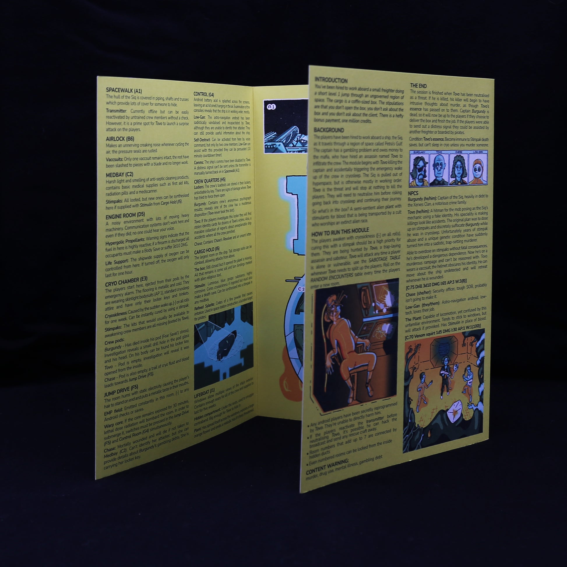 - Map: A detailed isometric map of the spaceship Siq and a printer-friendly, spoiler-free 2D digital map designed to be handed out to players.